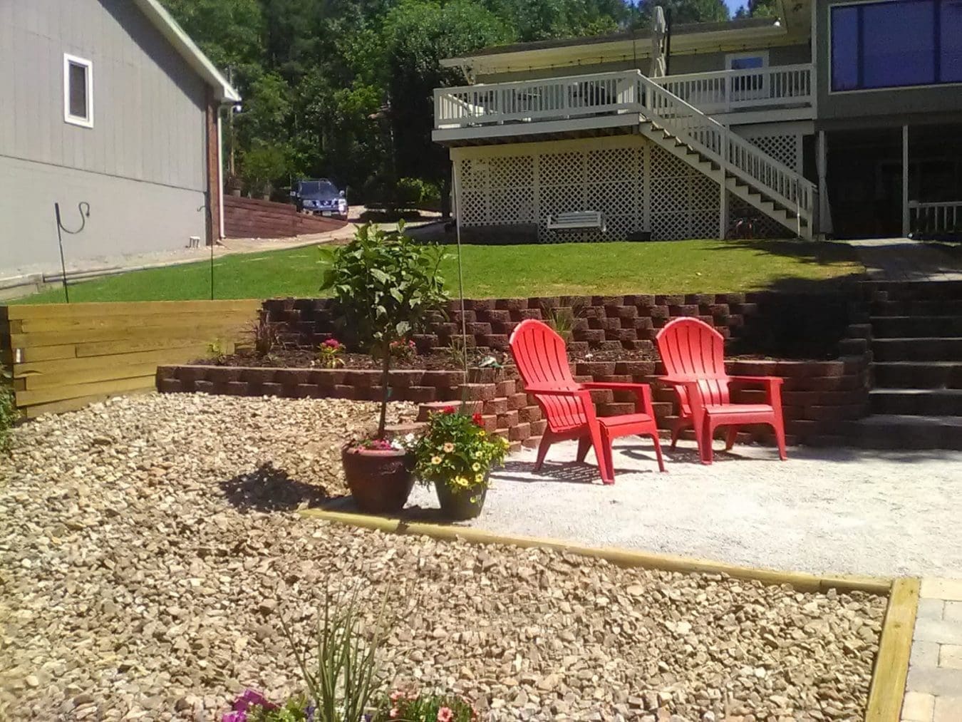This great Bella Vista yard boasts a wonderful lake view. It also makes a wonderful place to host a summer wedding, or in this case two. First, it needs a little landscaping makeover and some hardscape added. Here’s a backyard that 2 J’s & Sons landscaped in a hurry for a wedding backyard makeover.